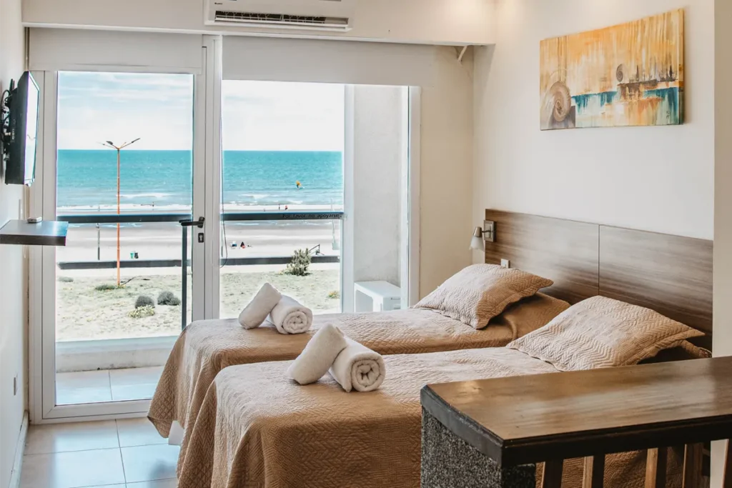 Nuestra habitación Standard es la opción perfecta para quienes buscan practicidad sin resignar confort. Un espacio funcional y acogedor, con vista al mar desde el balcón, donde cada detalle está pensado para que disfrutes al máximo tu descanso.